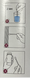 - Moisten the tip with water, wait 2 seconds for the reagent to dissolve, then rub the surface.